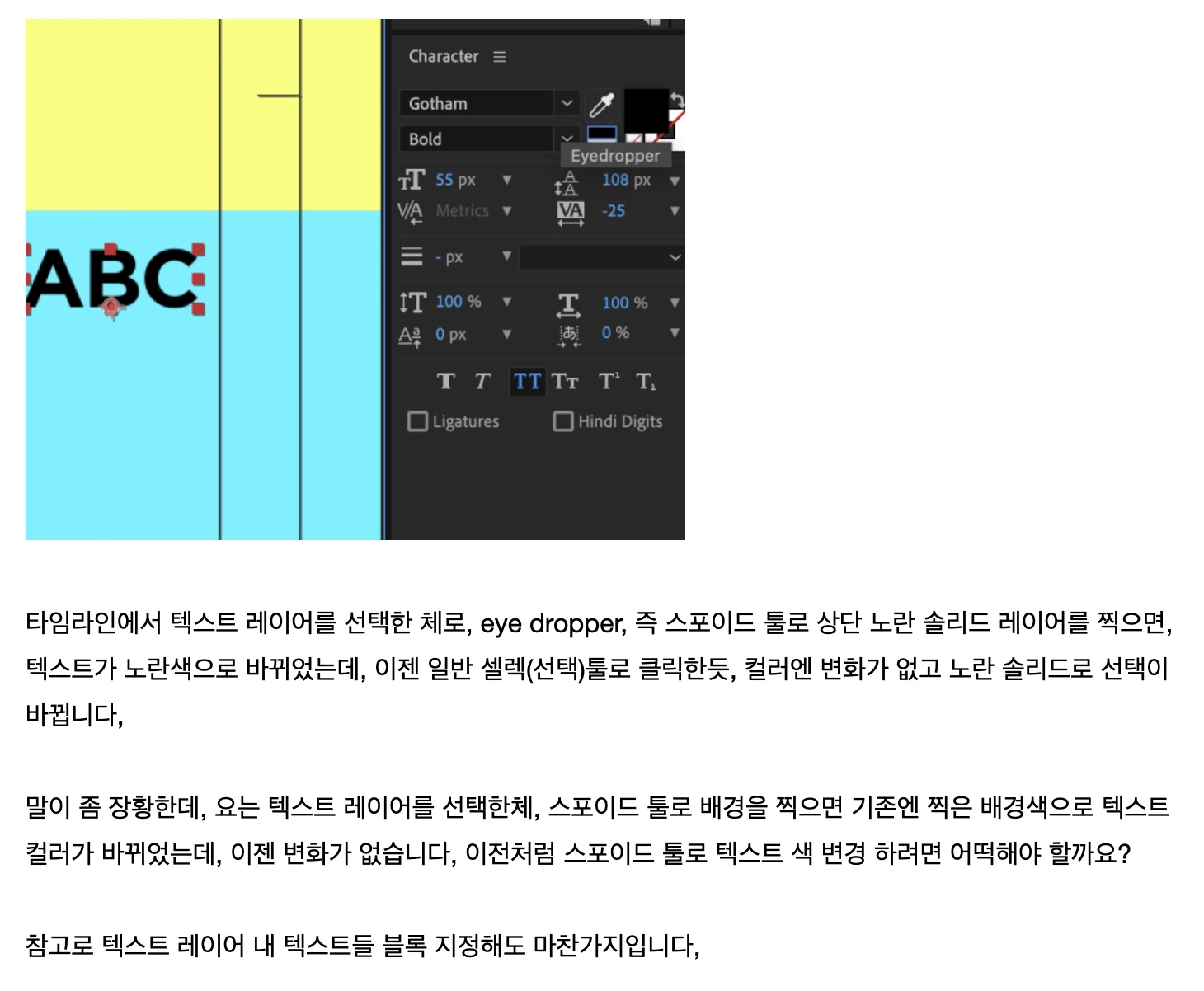 재재민24417221wvdrParticipantForum|Forum|3 years agoMay 12, 2022Question텍스트 스포이드 툴 오류일까요?Forum|Forum|3 years agoMay 12, 20220 replies148 views
