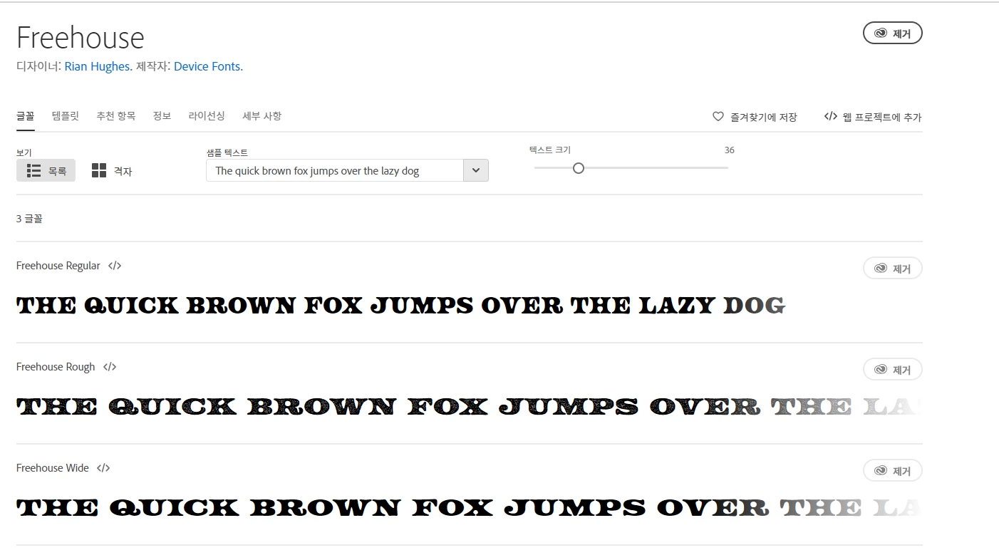 Adobe Fonts 글꼴 제거 (우측 상단 제거 버튼) 다시 추가하여 시도해 보세요!