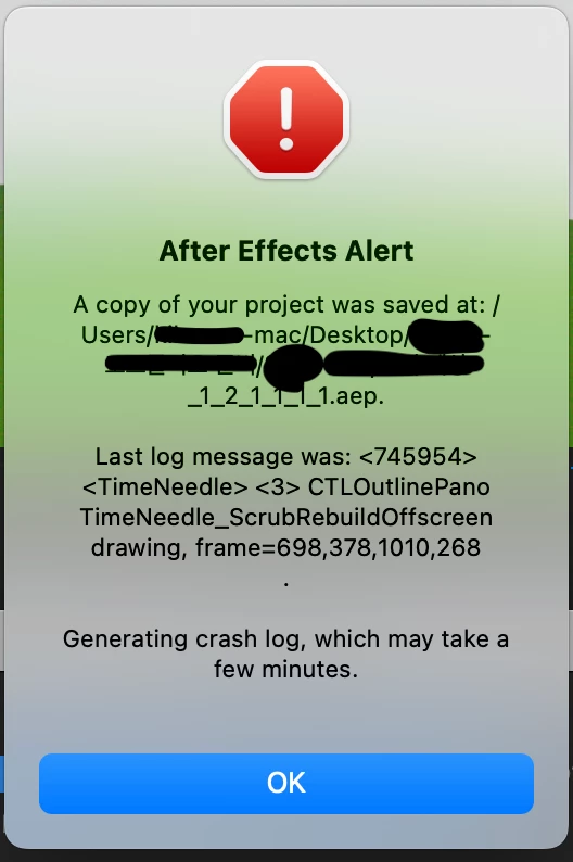 에펙을 사용하다가 반복적으로 창이 뜨면서 꺼지는데 이유를 모르겠습니다