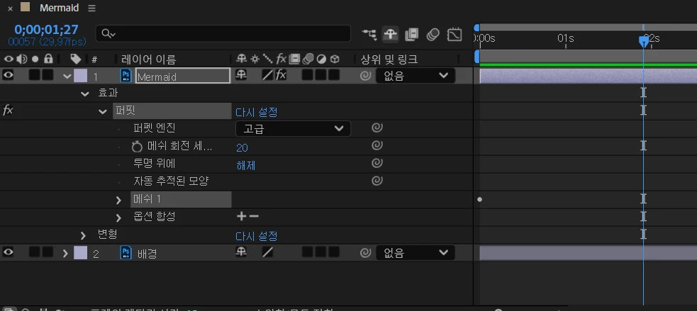 유튜브 영상을 보며 공부중인데 퍼펫을 여러개 찍어도 키프레임이 안 찍히고 점 하나만 찍혀요.