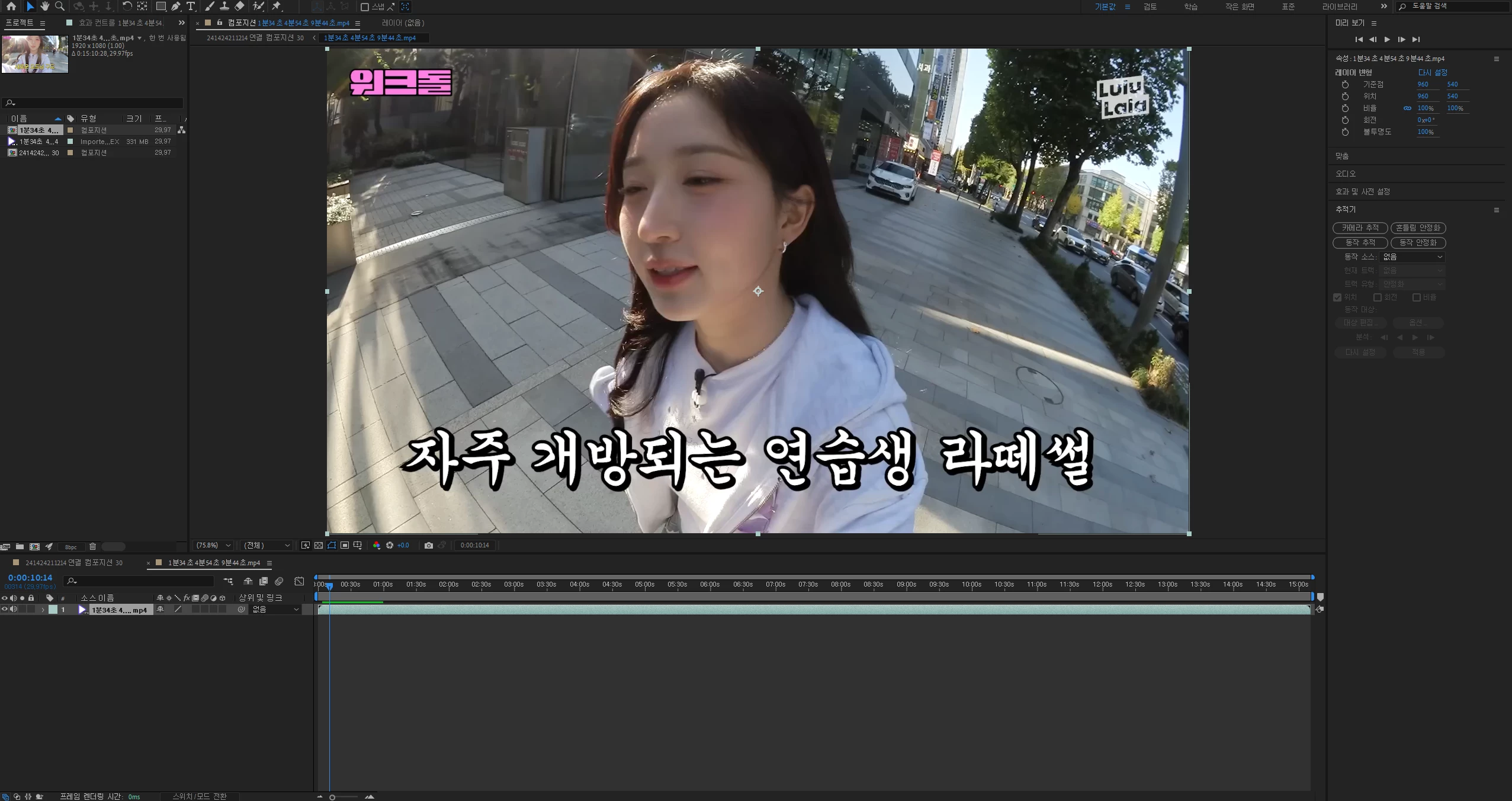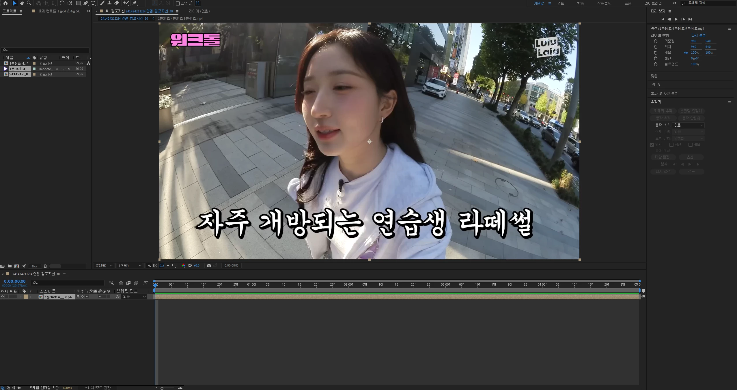 프리미어프로에서 에프터이펙트로 연동후 트래킹 작업을 하려고 합니다