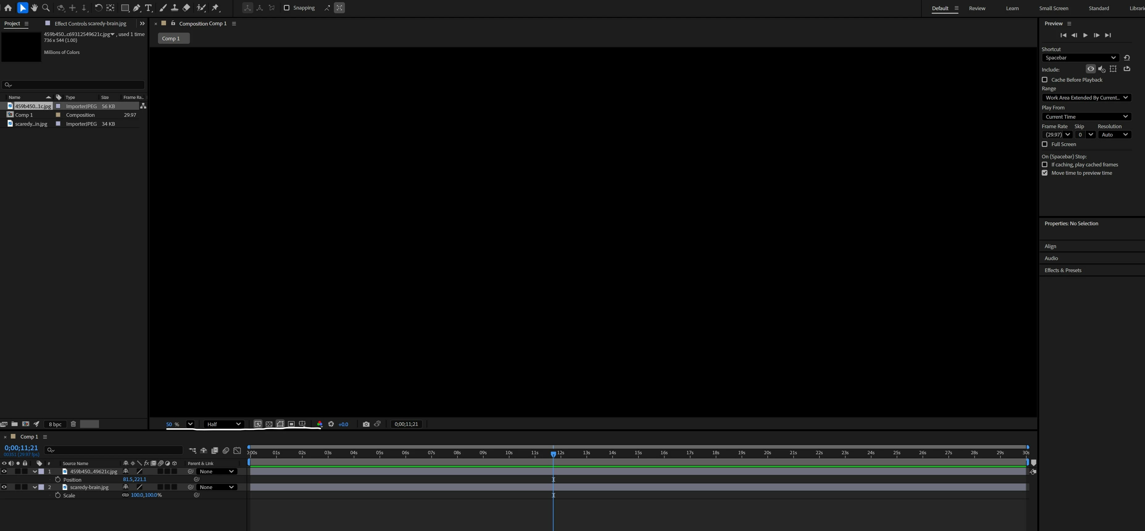 컴포지션 프리뷰 창이 무슨 짓을 해도 검은색으로밖에 출력이 안됩니다… ㅠㅠ
