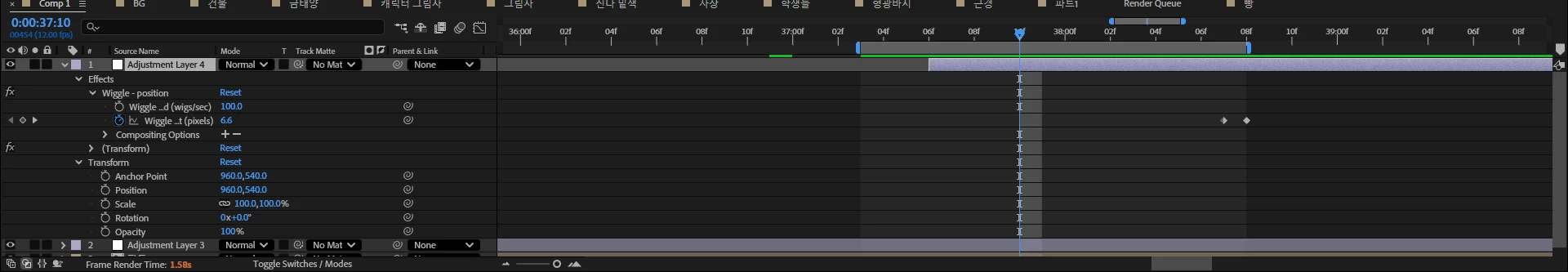 애니메이션 화면 흔들리는 효과임, 프리뷰는 잘만 적용되는데