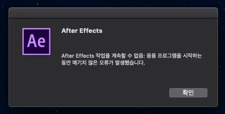 Adobe Creative Cloud로 에프터이텍터를 2019CC버전을 설치하여 실행하였는데