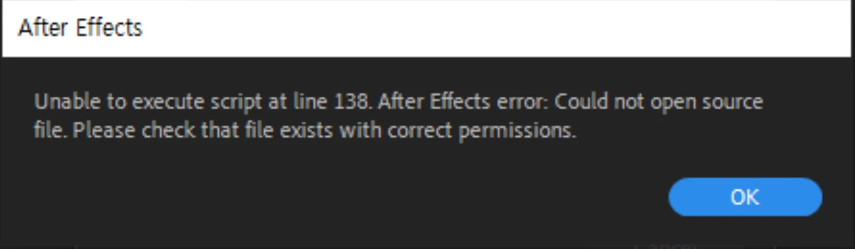 AE에서 모든 스크립트와 확장 프로그램을 제거하고 이 오류가 발생할 때까지 하나씩 다시 추가해보는 것인데요.