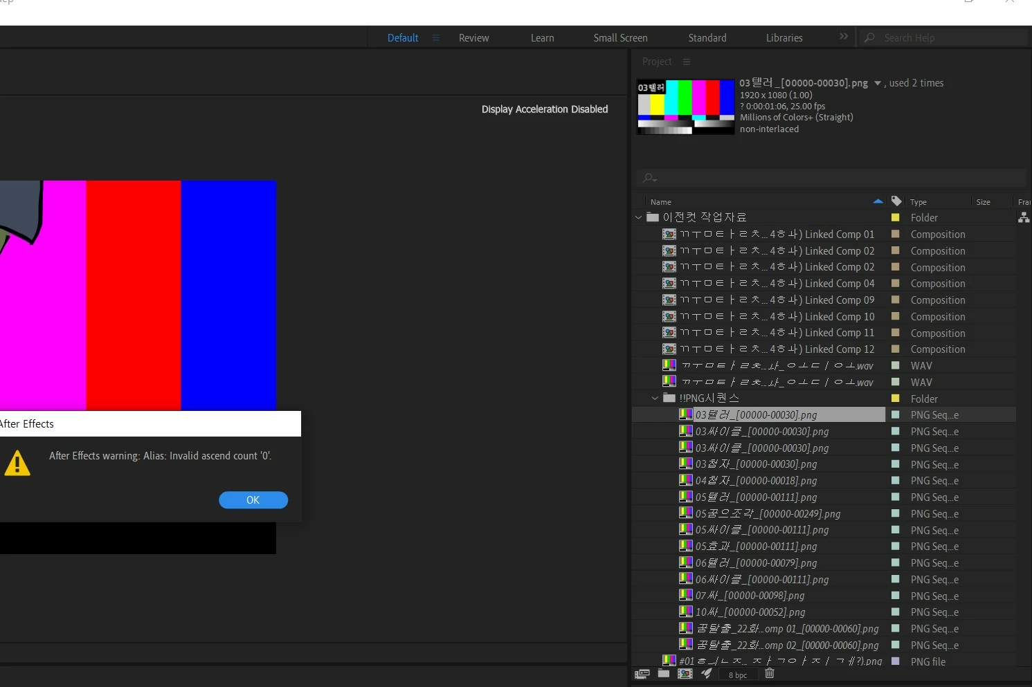 한국강2867501ParticipantForum|Forum|1 year agoJune 12, 2024QuestionAfter Effects warning: alias: invalid ascend count '0' 가 대체 뭐야Forum|Forum|1 year agoJune 12, 20241 reply175 views화딱지 난다