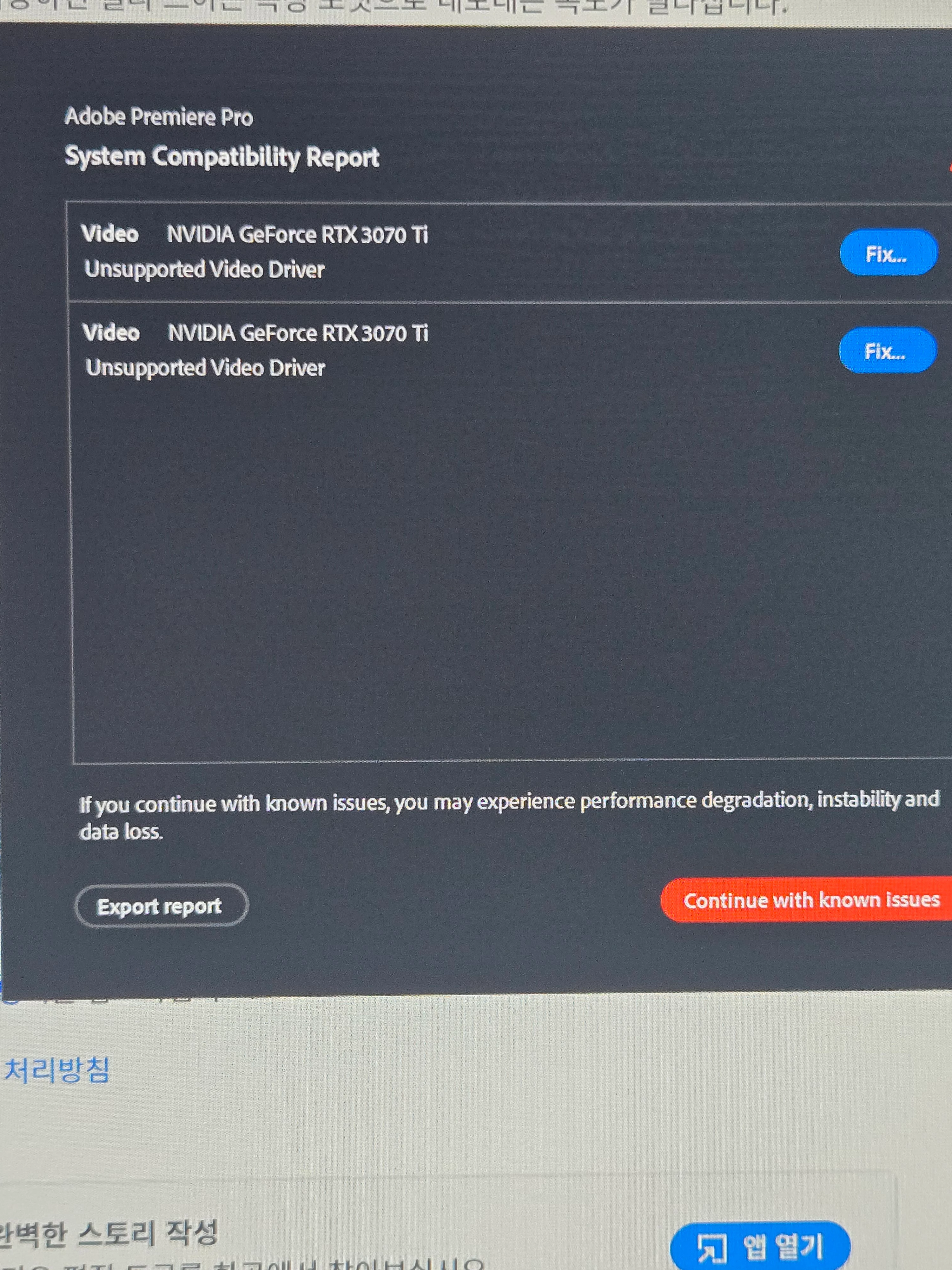 계속해서 엔비디아 컨트롤 패널도 만져보고 에펙 프로그램 세팅도 만져보고 있지만 상황이 나아지지 않습니다. 좋은 해결책이 있다면 알려주시면 감사하겠습니다.