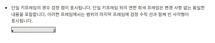 이경우 단일 키프레임 뒤의 연한 회색 또는 흰색 프레임은 변경 사항 없는 동일한 내용으로 표현이 됩니다.