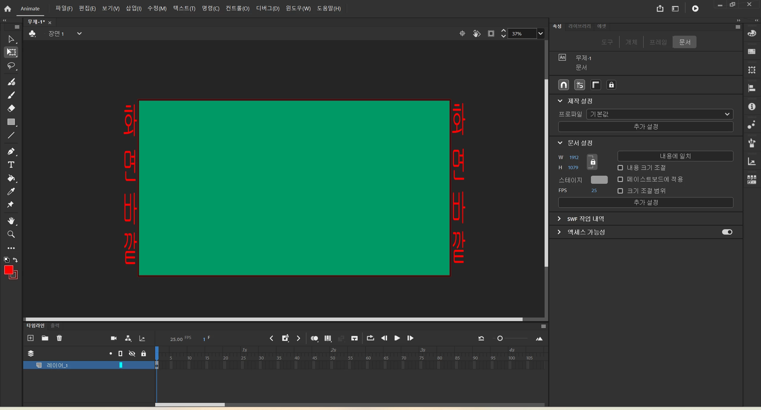 Adobe Animate에서 전체 화면 크기에 맞는 사각형을 그려도