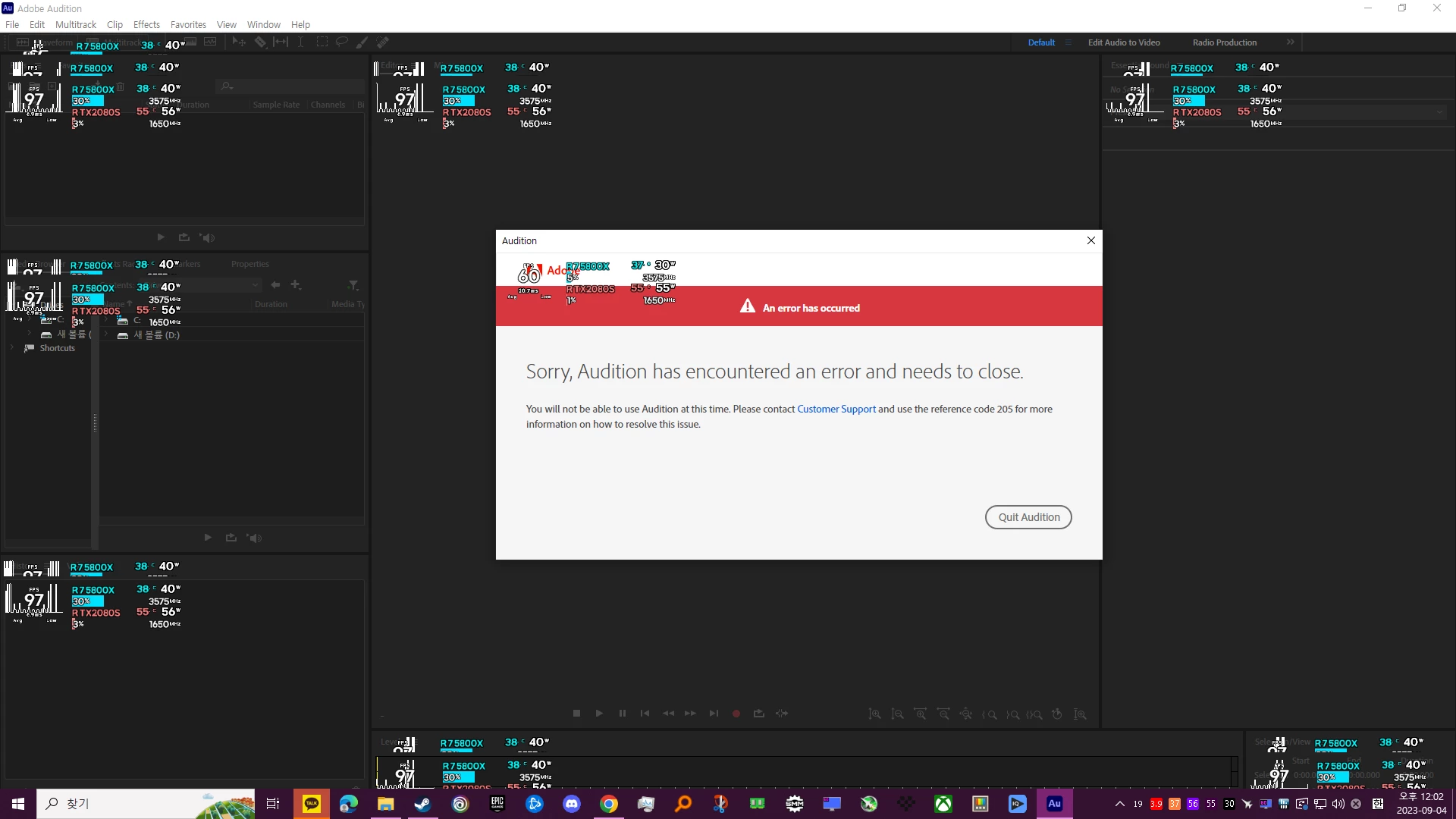 Audition을 열 때 오류 205 에러가 뜬다면,  다운로드 된 Audition 이 손상되었을 가능성이 높습니다.