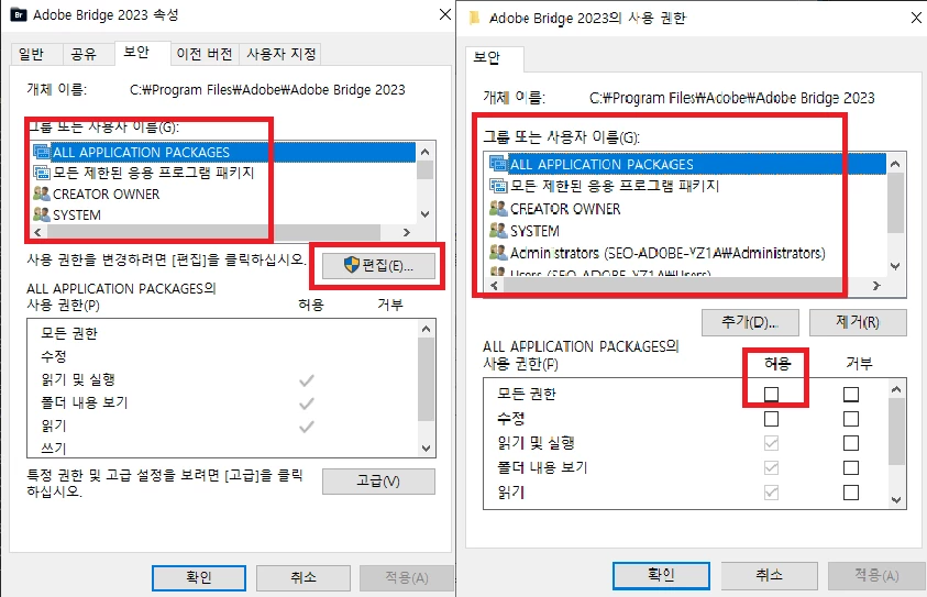 글자가 깨진 메세지창이 뜨길래 안됐는데 구글링으로 어도비 외국 커뮤니티같은데서 찾아보니까 깨진글자들 사이로 보이는 영어단어들을 보고 추정해보니까 이런 메세지인거 같습니다.