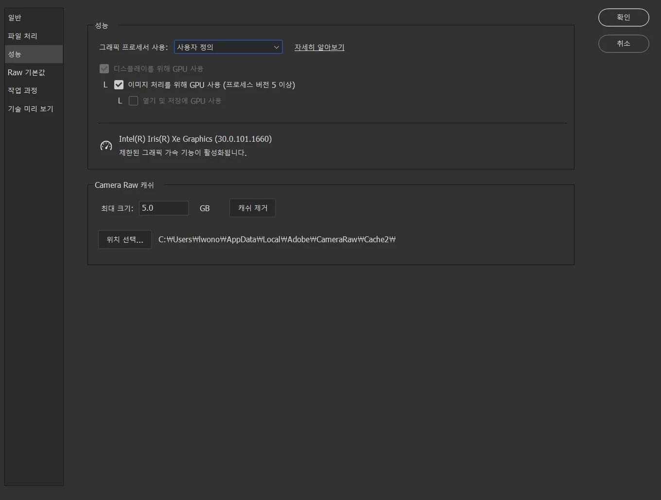 원원오26369315eykeParticipantForum|Forum|2 years agoMay 16, 2023질문ACR에서의 ai 노이즈 축소 GPU Set-up 방법Forum|Forum|2 years agoMay 16, 20231 답변276 조회adobe bridge에서 Adobe camera raw를 이용 및 ai 노이즈 축소에서 현재 intel 그래픽카드를 이용하여 프로세싱이 진행되는데 컴퓨터에 설치된 RTX 3060으로 프로세싱을 전환하고 싶습니다. 환경설정에서 성능 탭에서 인식된 그래픽카드가 intel만 인식이 되어 RTX 3060으로 GPU사용으로 전환하는 방법을 알려주시면 감사하겠습니다.( 포토샵에서는 RTX3060으로 인식됨)방법