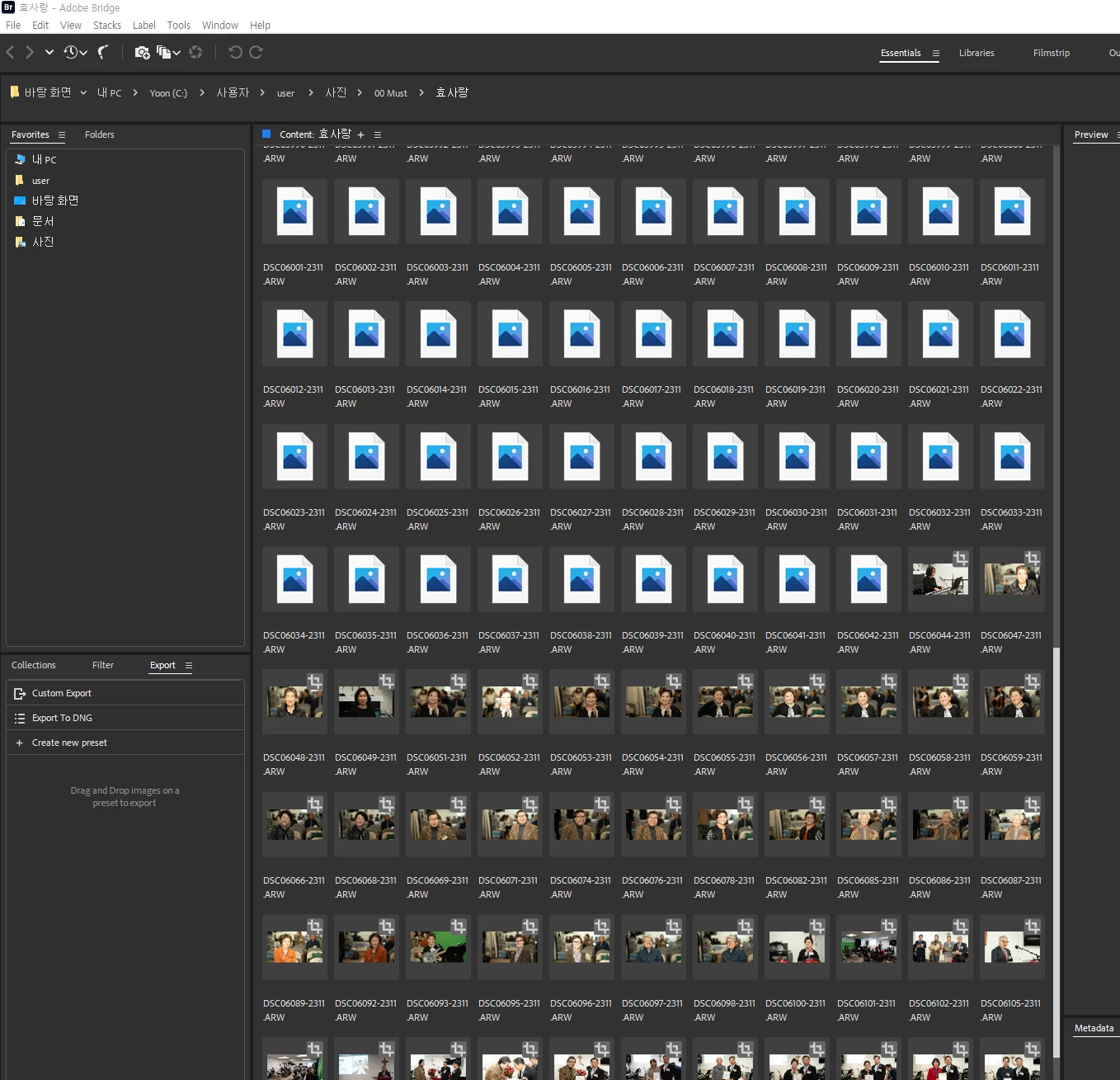 Sony Alpha 7 IV로 찍은 사진이 어도비 브리지에서 어떤 파일은 보이고 어떤 파일은 안 보여요. 대책이 없나요?