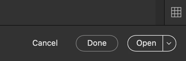 Adobe Camera Raw 에서 하단에 Cancel/ Done/ Open 버튼 있죠