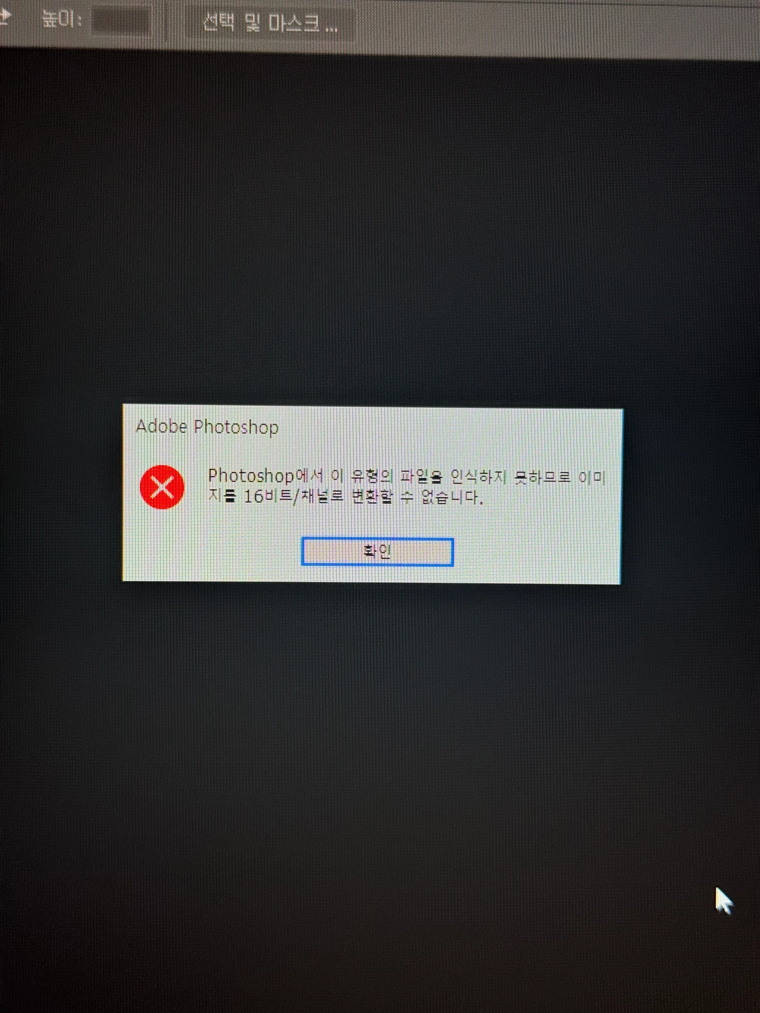 포토샵에서 raw파일이 안 열리고 오류 문구만 뜹니다ㅠㅠ