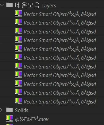 새로 컴포지션을 만들고 한글명으로 된 psd 및 mp4를 가져와 보세요.