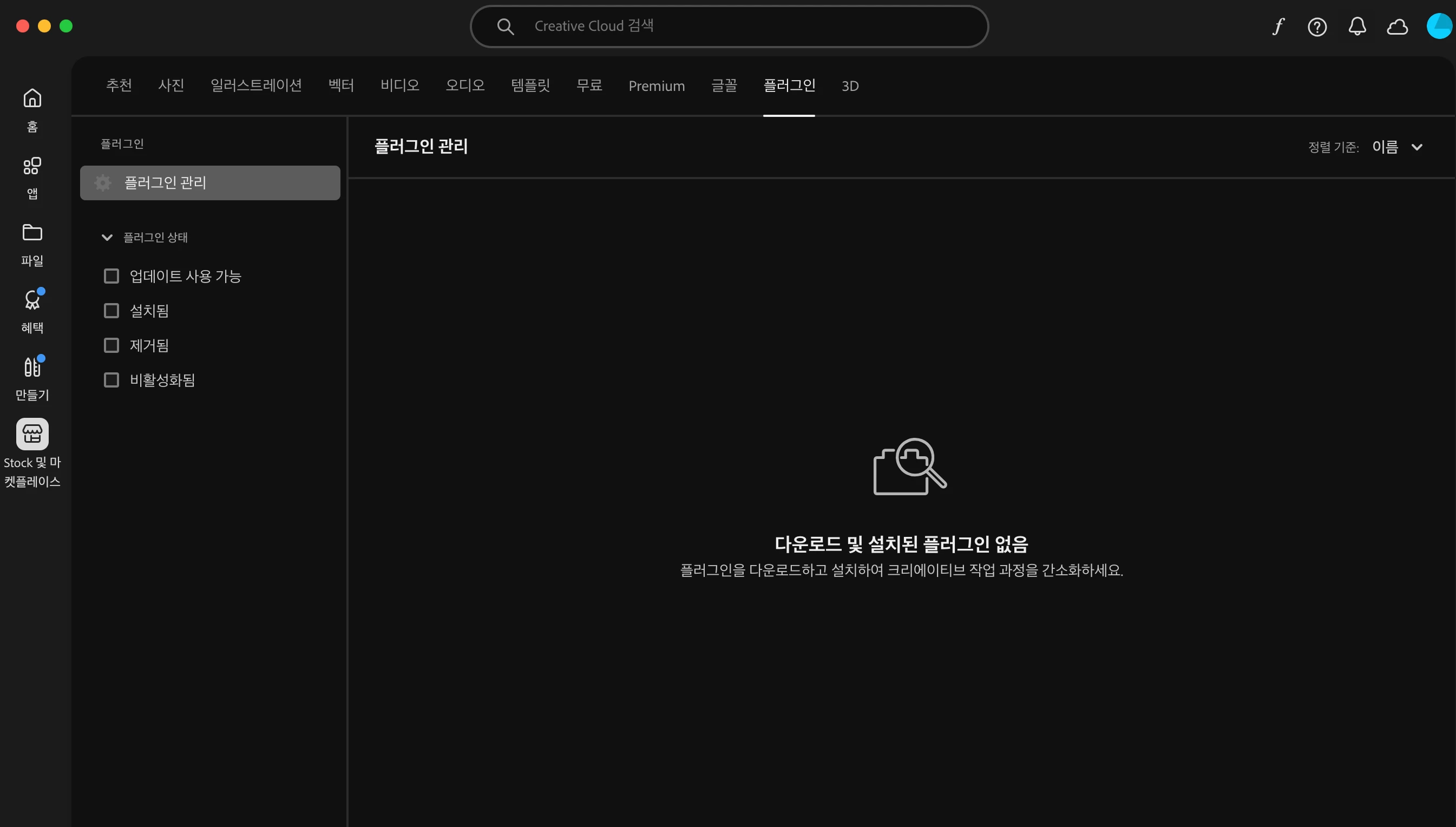 데스크탑 앱에서 플러그인 카테고리가 안뜸