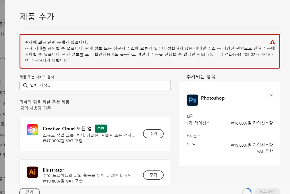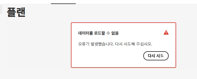 플랜을 확인하거나 관련된 페이지에 접속할 때마다 데이터 로드할 수 없다고 뜨고 지우고 다시 깔아도 소용이 없습니다.  아래 사직처럼 구매 이력은 있는데 라이센스 등록도 안되는 상황입니다.  이런 경우에는 어떻게 처리할 수 있는지 제발 알려주세요ㅠㅠㅠ