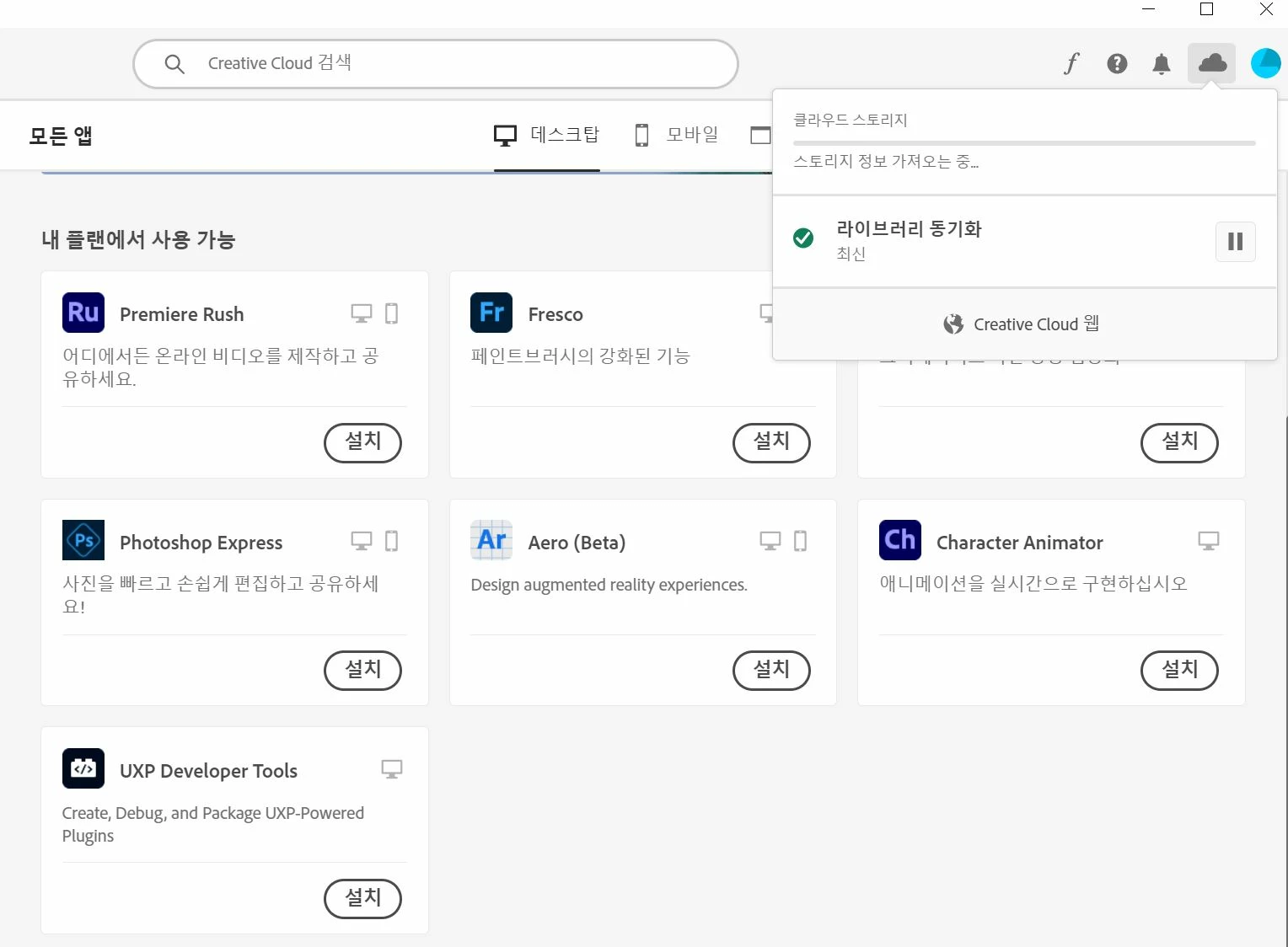 18000원내고 Creative Cloud 모든 앱 100GB를 학생용으로 결제했는데