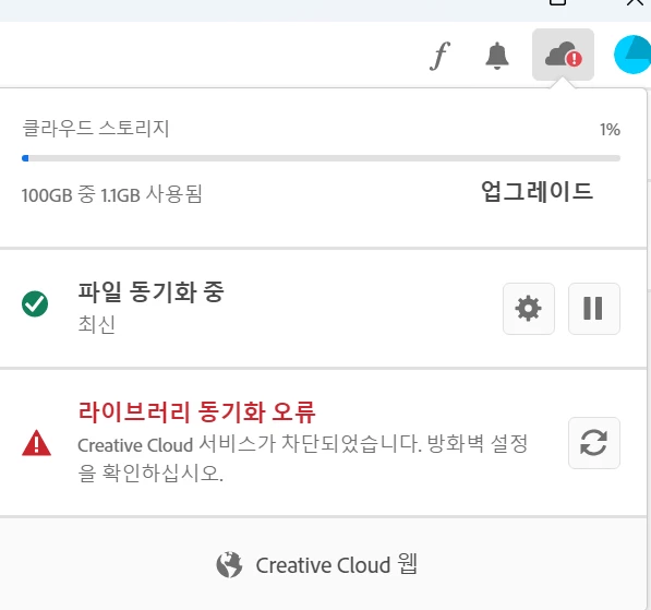 크리에이티브 클라우드 설치 후 라이브러리 동기화가 진행이 안 되고 방화벽 설정을 확인하라고 하는데 절차가 궁금합니다.
