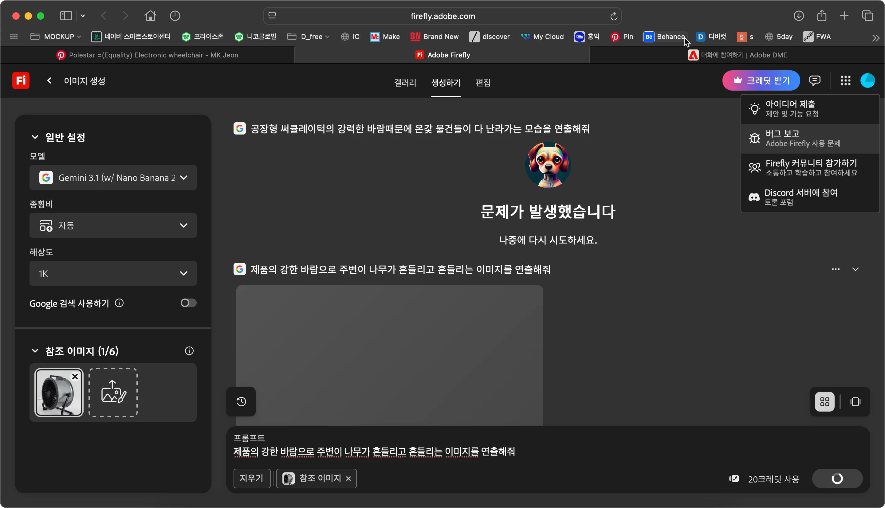 Firefly 업데이트 진행 후 이미지 참조 및 파트너모델 사용시 일시적으로 오류가 있었던 것으로 확인됩니다.