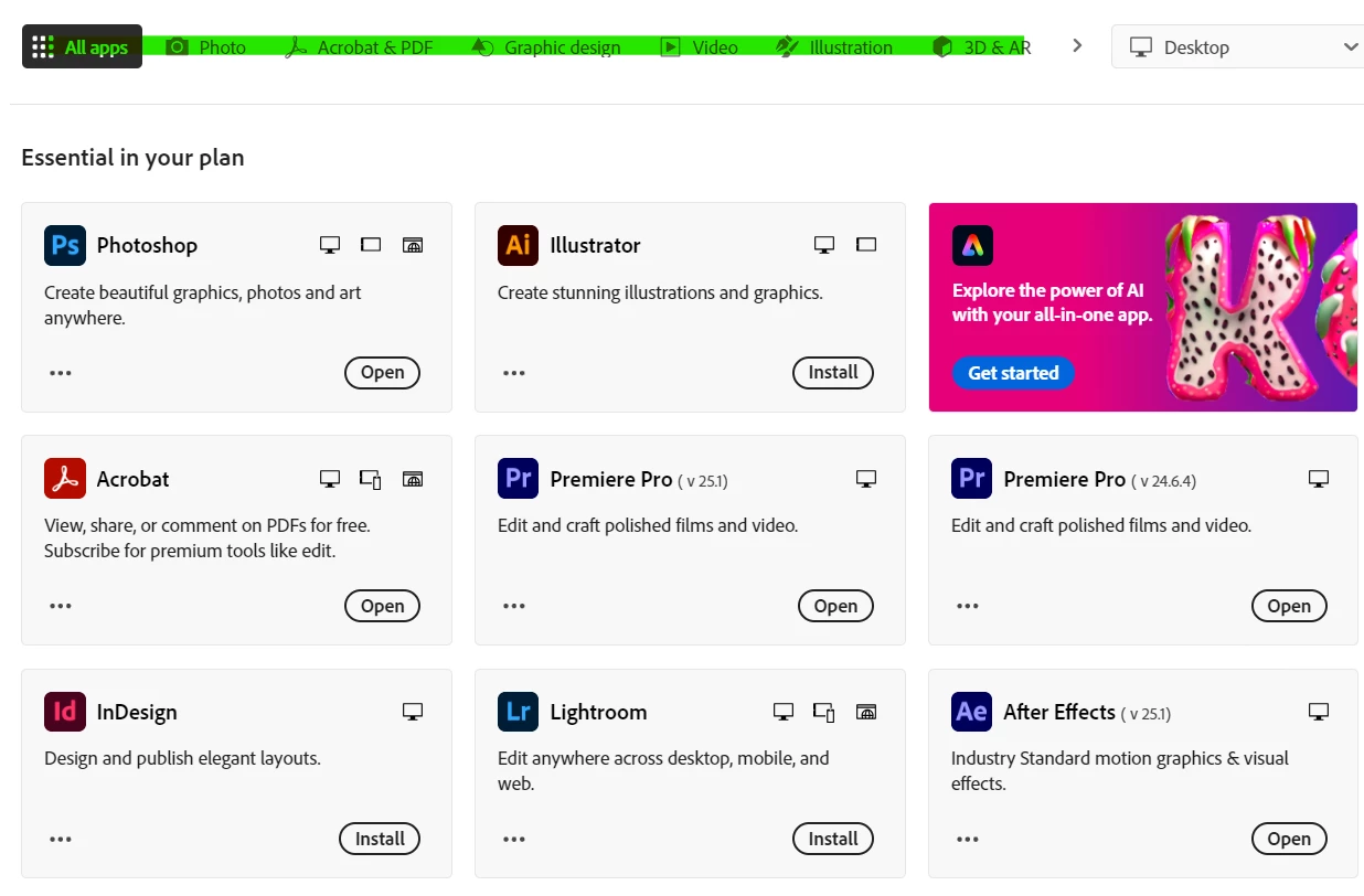 일단 베타버전을 이용하기 위해서는 크리에이티브 클라우드가 최신버전 일때 설치및 이용을 할 수 있습니다.