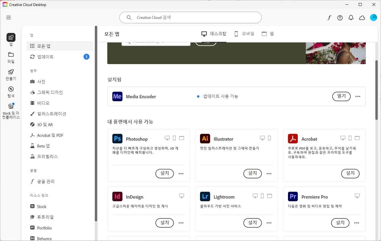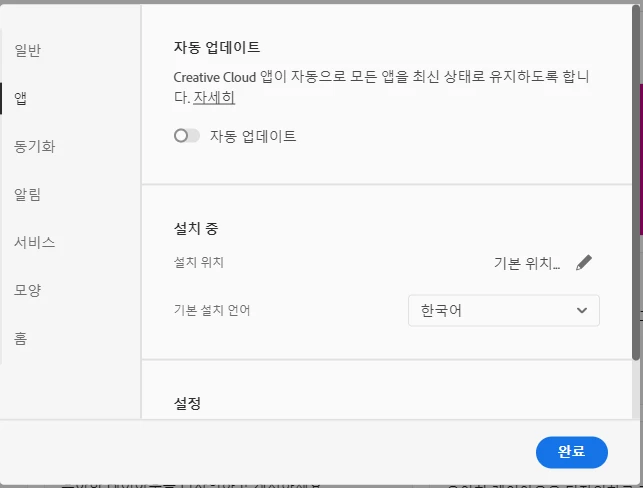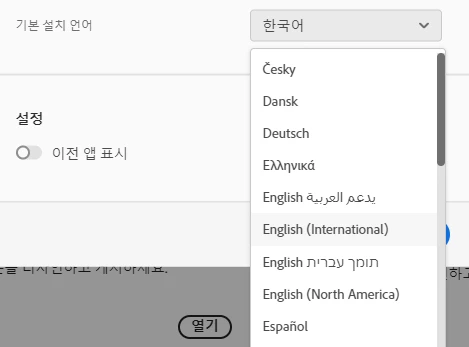 혹시 creative cloud 앱의 언어가 한국어로 설정되어있나요?