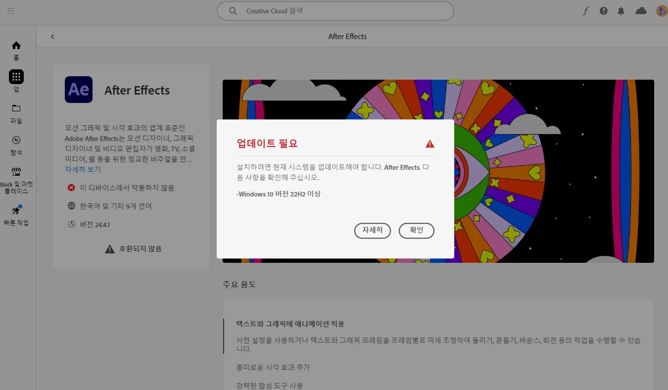 시스템 호환되지 않음이라고 계속 뜸