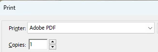 - Print 항목에서 "Adobe PDF"를 선택해야 합니다.