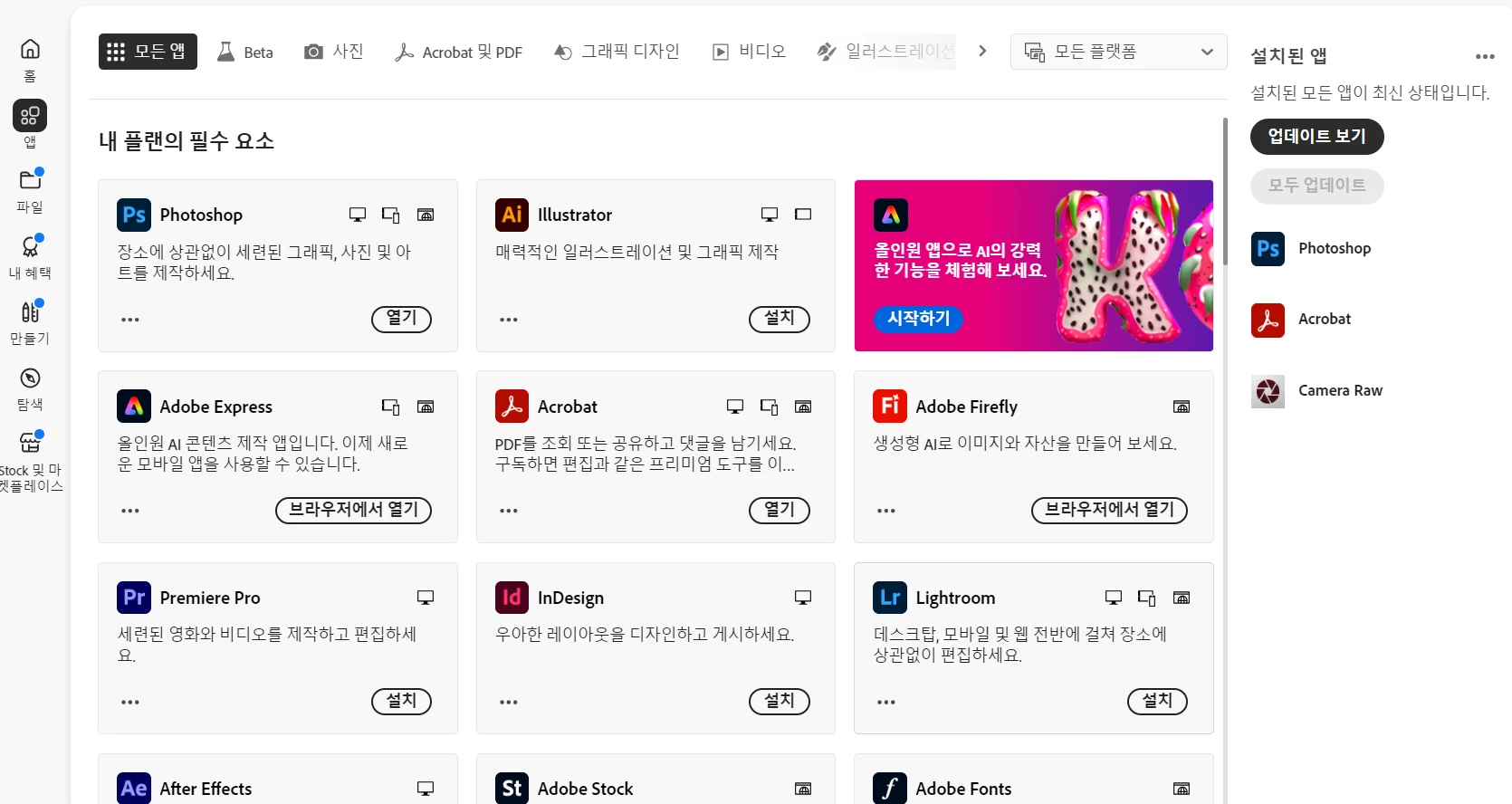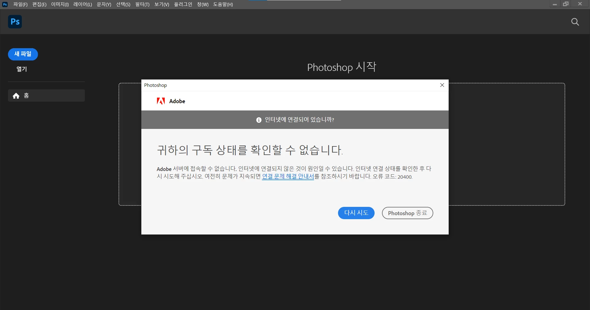 어도비 구독중인데 포토샵 등 툴이 안열리네요