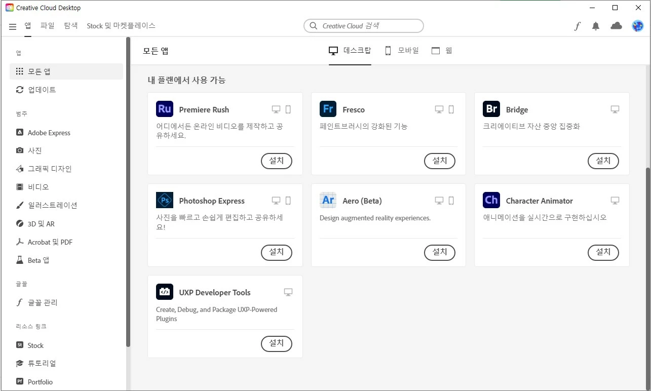 어도비 데스크탑 앱 설치를 할 수 없습니다.