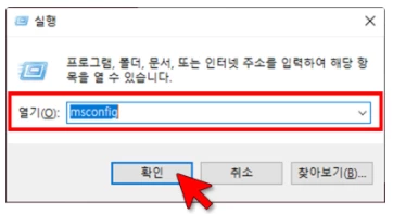② 아래의 명령어를 입력하고 [확인]을 선택합니다.