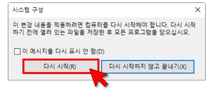 ④ 표시되는 안내창의 [다시 시작(R)]을 선택합니다.