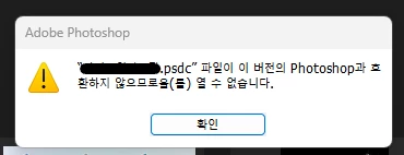 안녕하세요. 업데이트 후 하드드라이브가 아니라 클라우드에 저장하는 파일들은 첨부된 사진처럼 이 버전의 포토샵과 호환하지 않으므로 열 수 없다고 나옵니다.