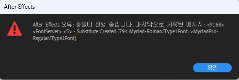 After Effects의 글꼴오류가 발생하셨군요.