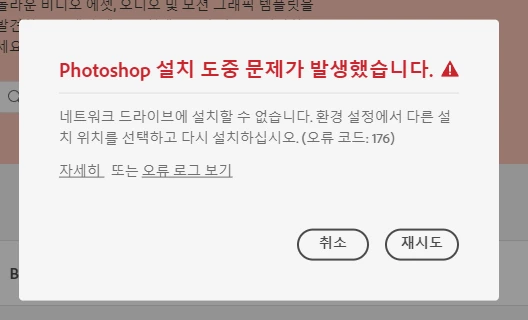 오류코드 176은 네트워크 드라이브에 설치 할 수 없다 이던데,