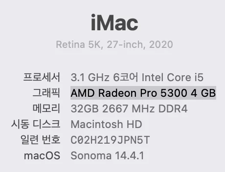 사용 중인 그래픽 카드의 드라이버 버전을 확인 후,