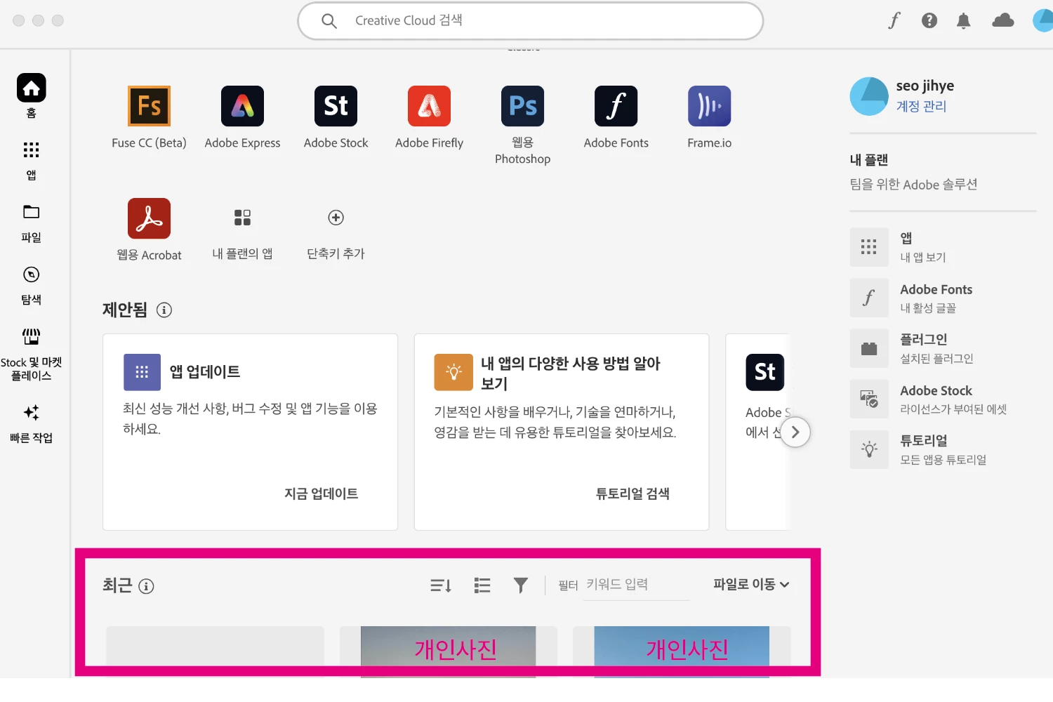 크리에이티브 클라우드 앱에서