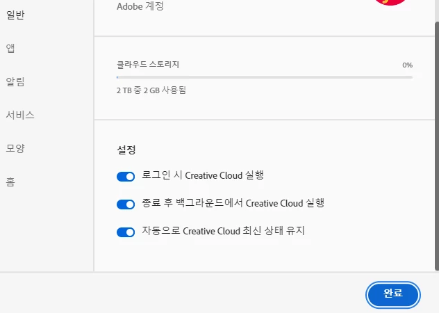 일단은 크리레이티브 클라우드 환경설정에서 해당 옵션이 켜져 있는지 확인후 해당 옵션이 켜져 있는데도 불구하고 로그인이 풀리신다면 한번 해당 방법을 진행해 보겠습니다.