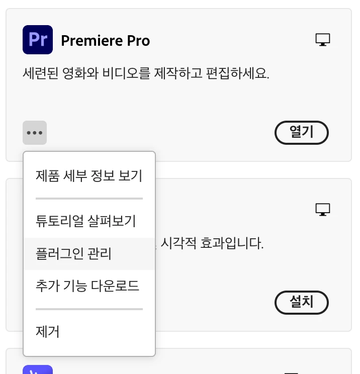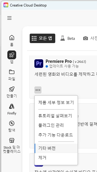 크리에이티브 클라우드에서 프리미어프로 구버전 다운로드