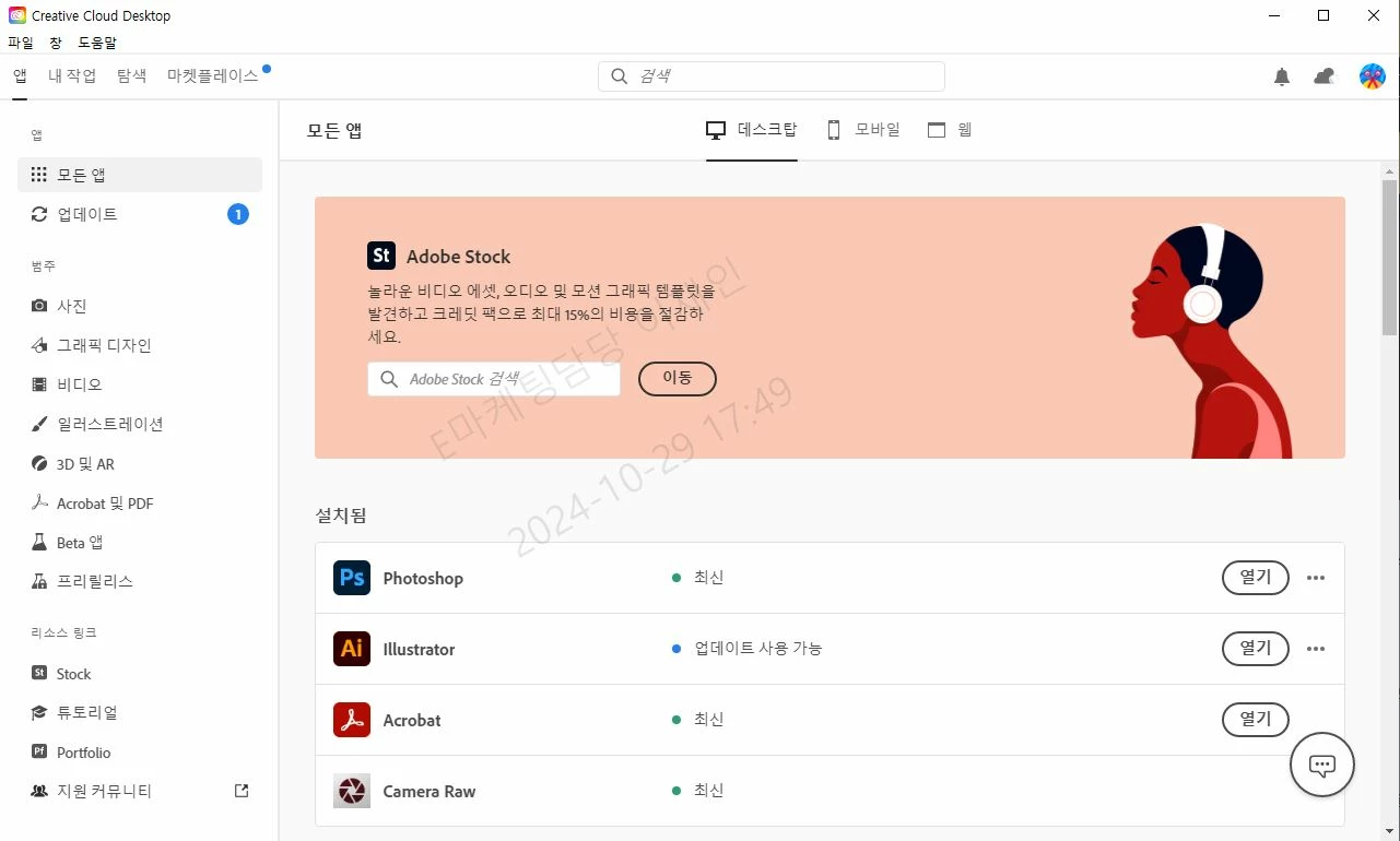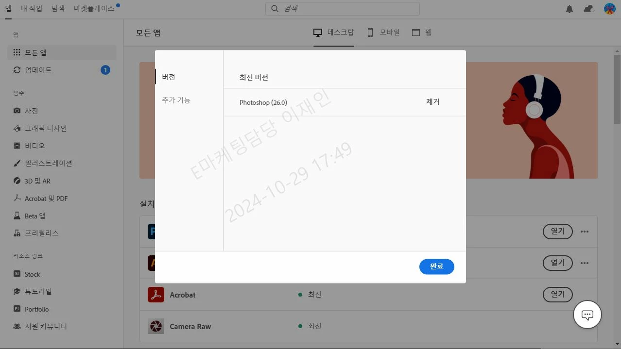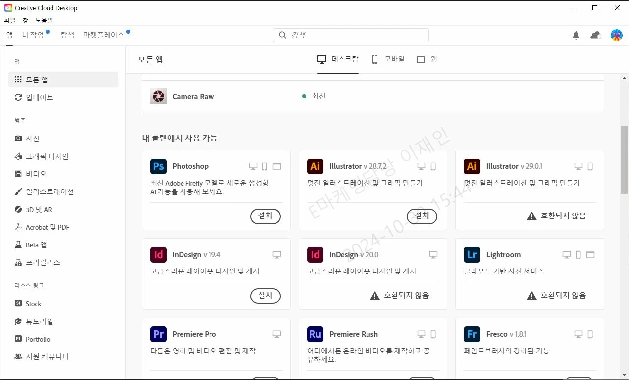 가지고 있는 다른 피시에서는 크리에이티브 클라우드 앱이 최신 버전이고,