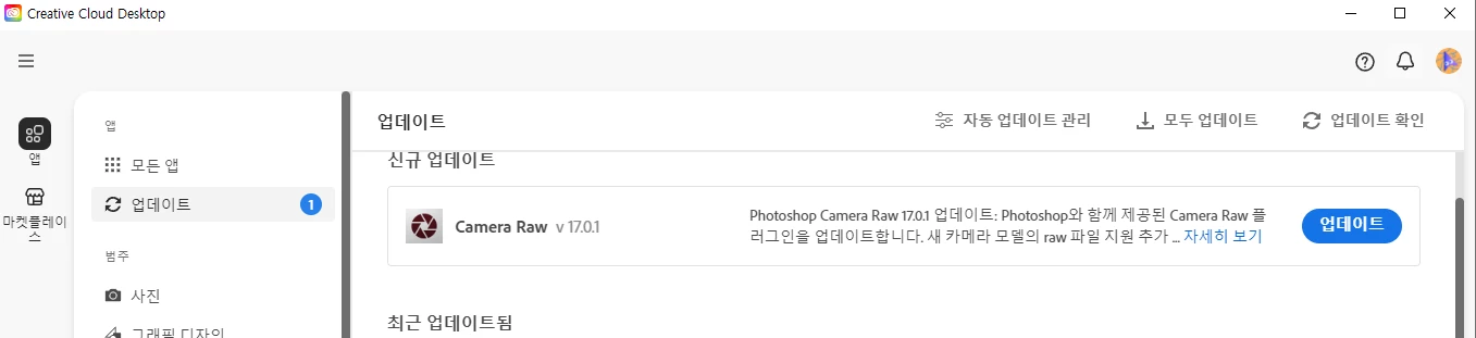 이후 다시 클라우드 실행및 가로줄 세줄 > 도움말 > 업데이트 확인