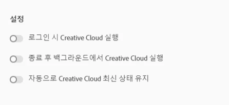 크리에이티브 클라우드가 켜지는 게 원치 않은지라.. 이는 올바른 해결법이 아닌 거 같습니다 그리고 한 번 끄고 나면 크리에이티브 클라우드가 안 켜지긴 합니다..