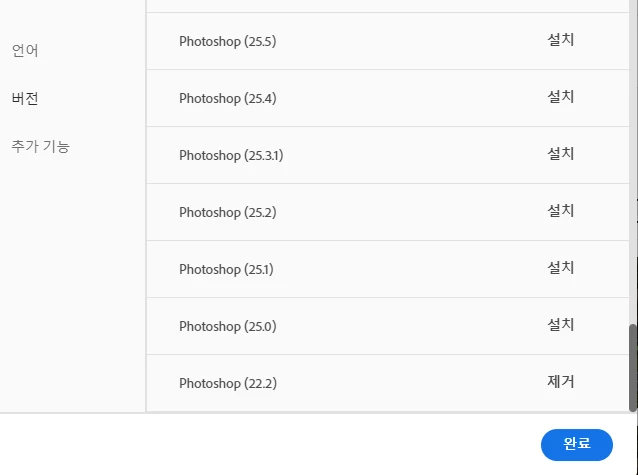 아무리 봐도 제거하고 싶은 25버젼이 설치로 떠있고 제거가 없는 상태입니다.
