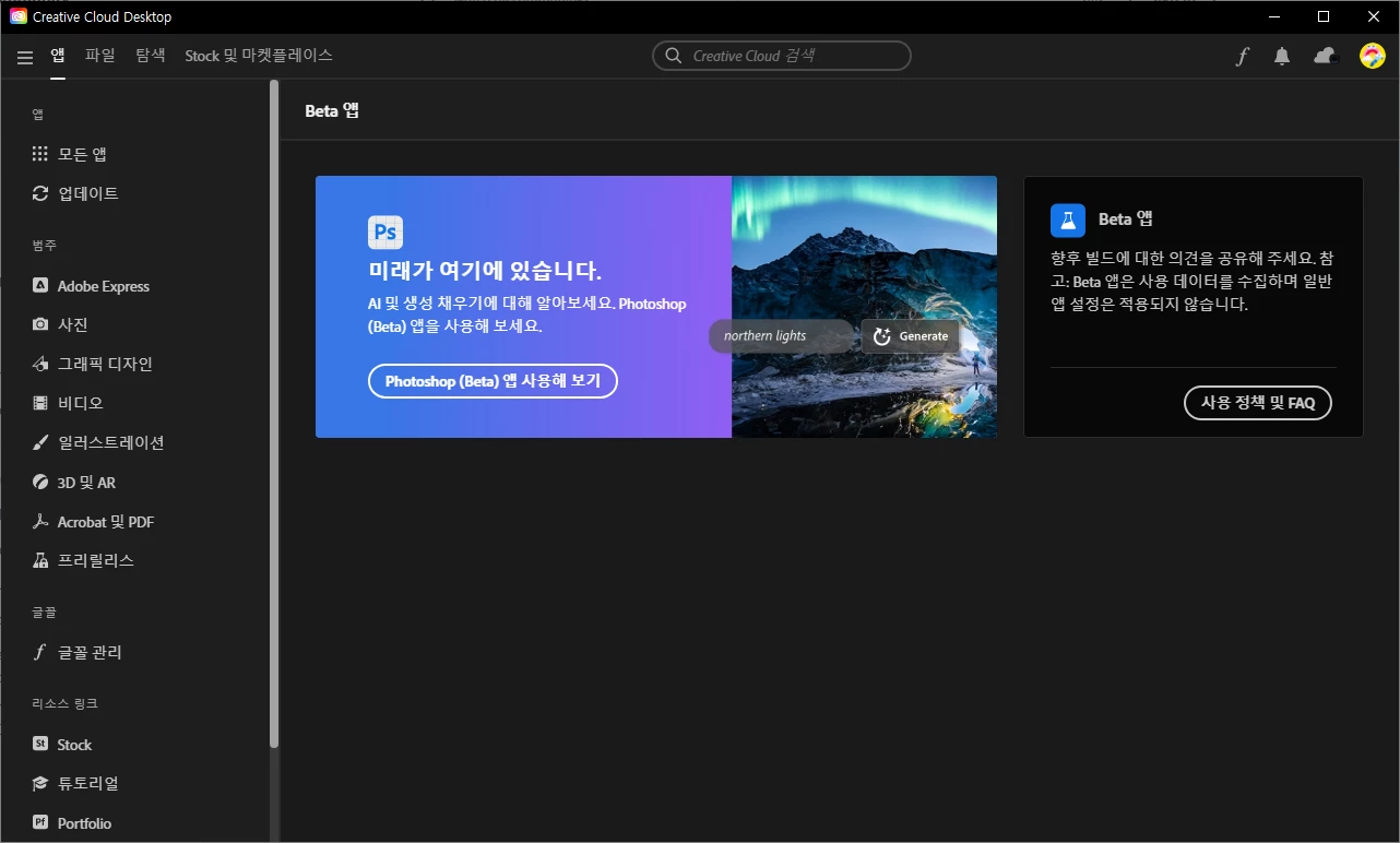 포토샵 beta를 다운로드할 수가 없습니다.