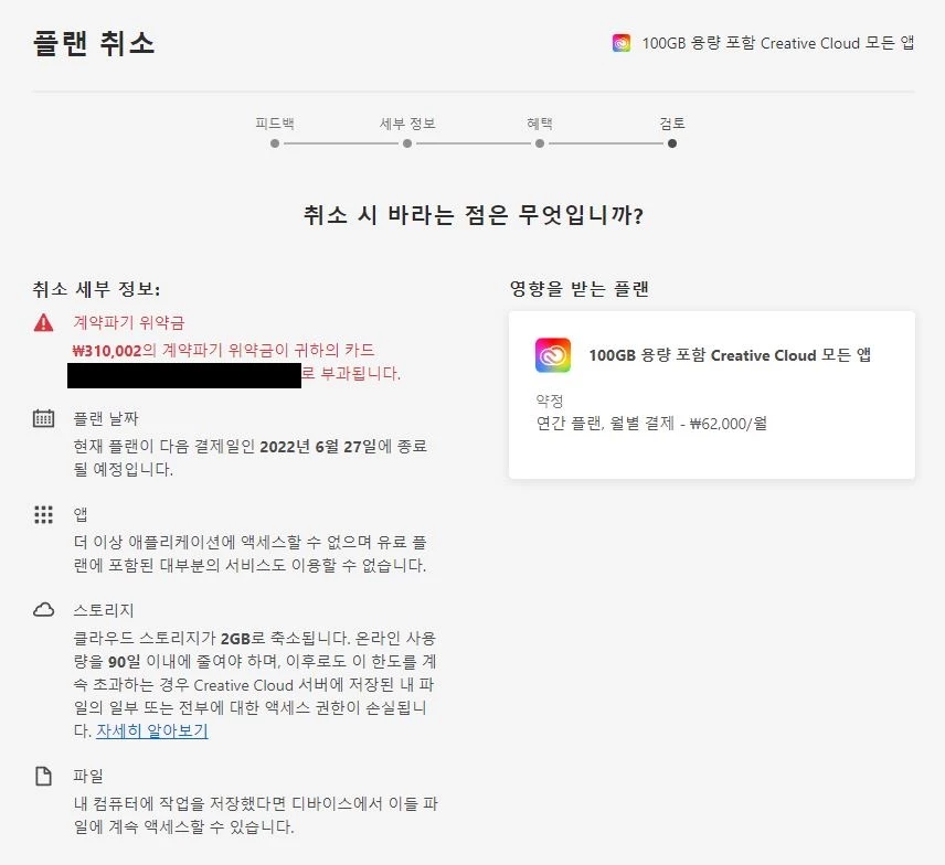 결제와 관련하여 도움이 필요하신 경우 자세한 확인을 위해 Adobe 고객지원으로 문의해 주시기 바랍니다.