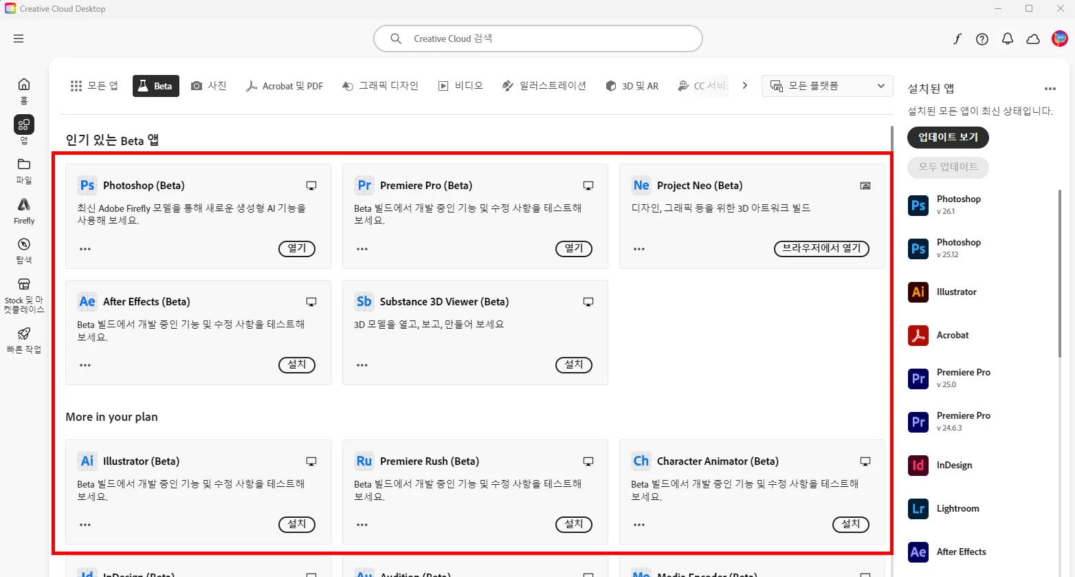 ▶ 참고문서 : Beta 앱 및 기능, Adobe Creative Cloud 베타 FAQ