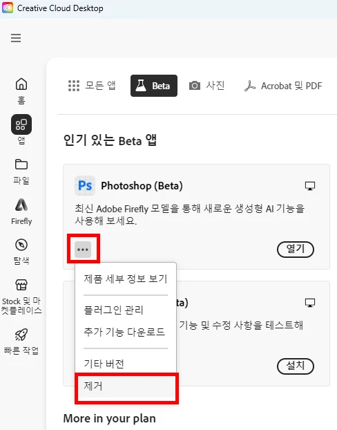 베타앱을 제거할때는 베타 버전 열기 버튼옆 점 세개를 눌러주시고 '제거'를 눌러주시면 되십니다.
