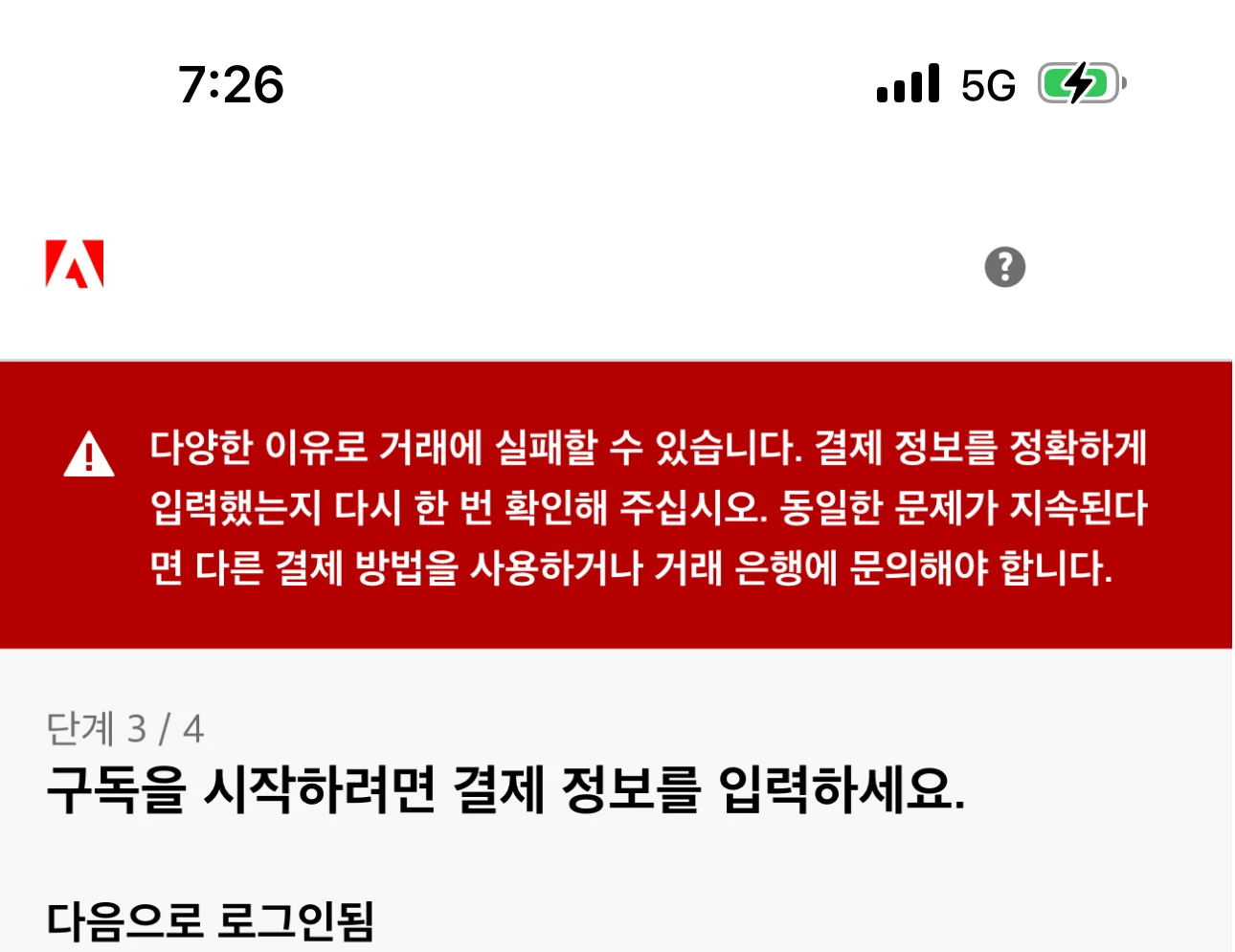 Adobe CC 결제 오류