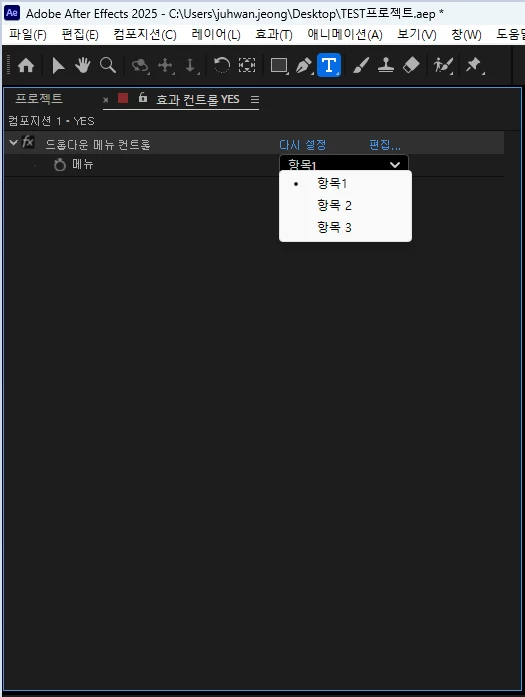 after effect 2024부터 effect-expression contril-drop down menu 에